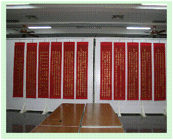 | 100.3.11百歲鳥蟲體書法大師趙慕賀蒞臨參觀。 | 展場一隅。 |
