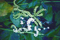 【形態】多年生木質狀蔓性草本,嫩枝、葉、花密生短柔毛。單葉互生,紙質,表面粗糙,脈凹下,全緣基鈍端短尖,矩圓狀橢圓形。花聚繖花序,頂生,蝎尾形穗狀,花小,綠白色。果、初綠,熟白色。