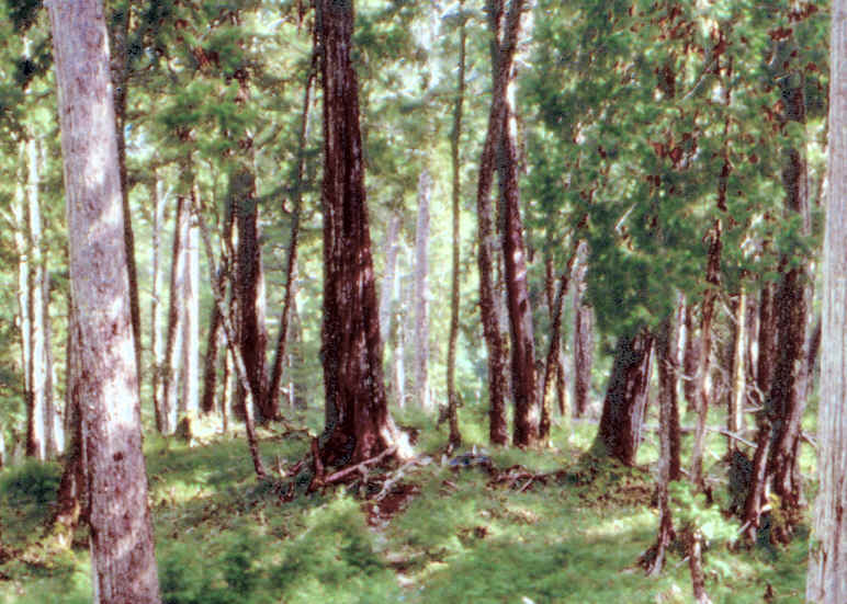 退輔會一期接一期的向天然林開刀,就剩這麼一片活化石瑰寶一吋吋的 失血!接近已開發國家的台灣,為什麼培育不出任何一絲尊重自然、保育自 然的情操?已消失的自然絕不可能再造,這一代難道非得成為永世的罪人不 可?天憐台灣! 退輔會「傲視」林業界的偉大成果,許多林學界「讚譽有加」的「樣版 區」即如圖中的老樹加人工育苗,不幸的是自然完整的生態系早已摧毀。這 一切只貪圖眼前近利,國家卻縱容如此無知?所有的作業奠基在一個「學理 謊言」,說什麼檜木不處理會滅絕,以及「偽數據」,說什麼枯立倒木39% !事實上這是屠殺自然、消滅自然! |