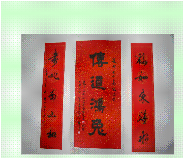 | 書法家曾臥石將其揮毫作品贈與傳道法師。 | 書法家王西崇石將其揮毫作品贈與傳道法師。 |