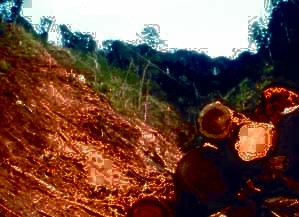 ▲阿里山鐵路開啟檜木淪亡錄(陳月霞翻拍)           ▲國府治台後徹底砍伐時期